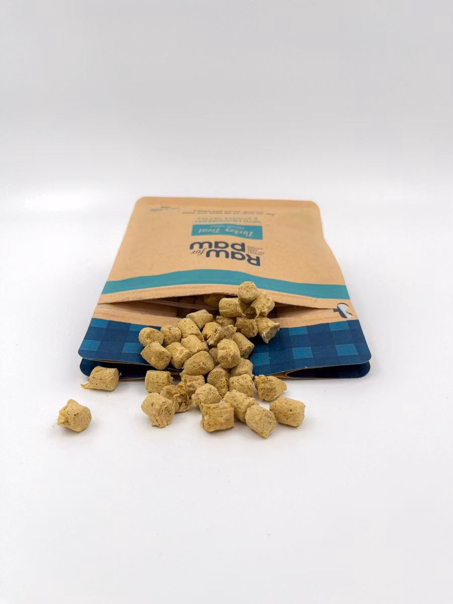 Frystorkat hundgodis med smak av gris berikade lingon och nässla. Smidiga bitar som är mjuka för hunden att tugga och för dig att bryta i mindre bitar. Passar hundar i alla åldrar.
